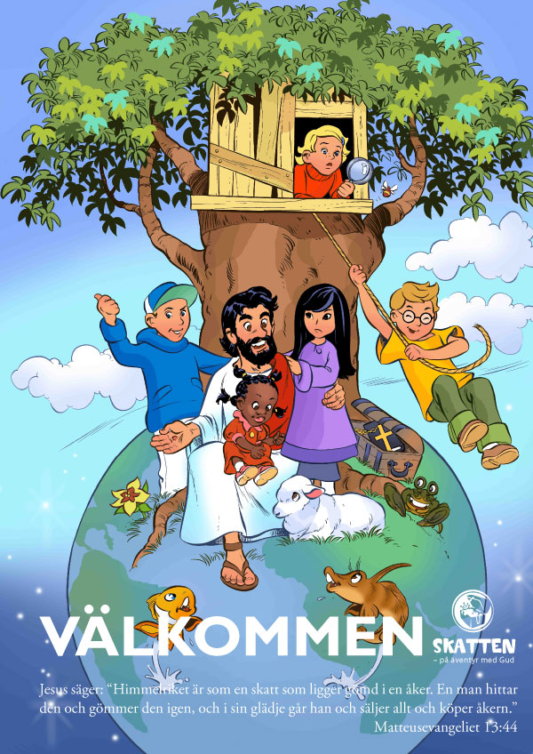 Denna affisch, med samma bild som SKATTENS väggbonaden, kan förslagsvis sättas upp på dörren in till söndagsskolerummet.