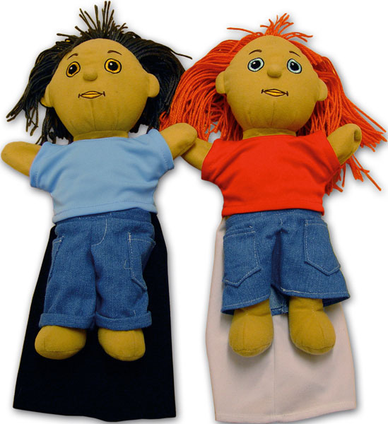 Två handdockor till berättarformen dockteater. Till dockorna ingår både nutida och bibliska kläder.